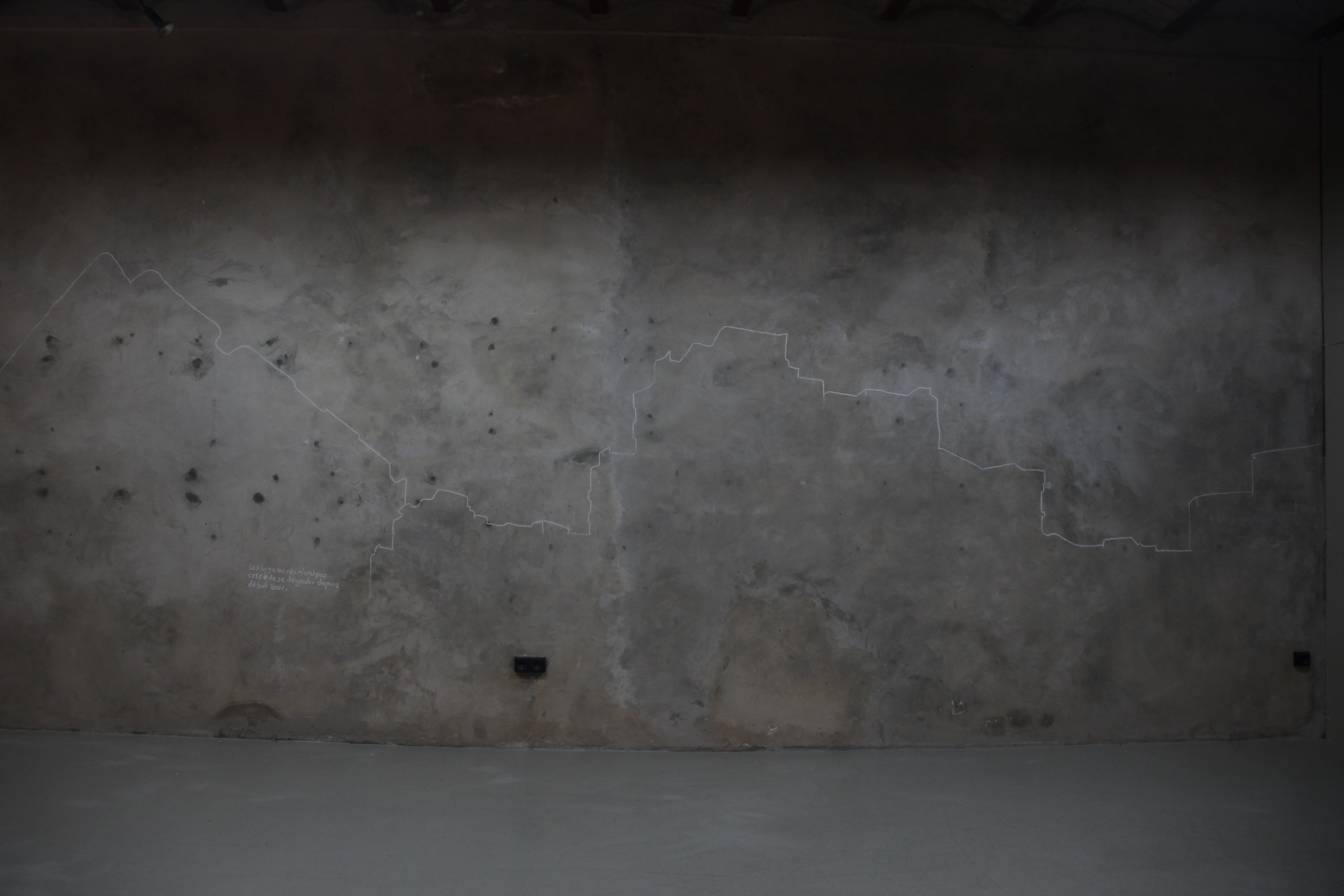 J’ai extrait quelques images de ces immeubles parmi mes Archives II, et Melancholia Algeriana présente leur contour tracé à la craie, produisant ainsi une ligne chaotique et éphémère.
